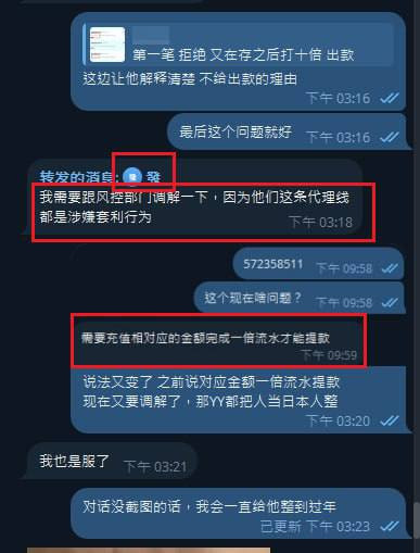 更过分的是,他们所谓的风控处理方式,竟然要求每个账号必须再存入对应金额的二次存款,还强制绑定10倍流水,说完成之后才考虑给出款。